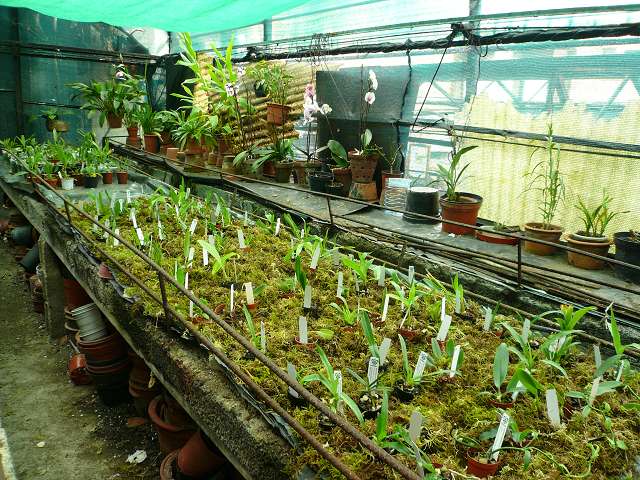 Herr Prof. Dr. Schön und seine zwei Gärtnerinnen tuen alles, damit es den Orchideen gut geht. Die mittelgroßen und großen Orchideen sind bereits umgetopft (in größere Blumentöpfe) und jede Pflanze bekam seine Spezialerde.
