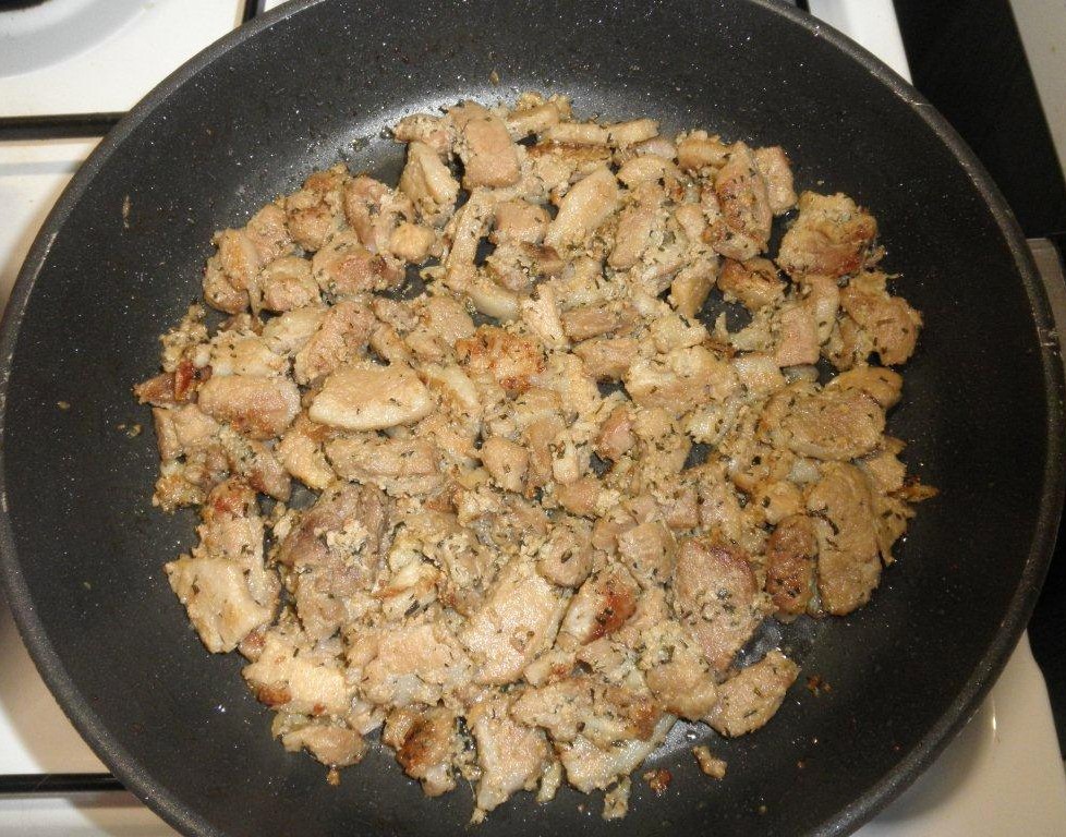 In der Zwischenzeit das restliche Öl in einer großen Pfanne erhitzen. Das Brot hineinlegen und auf beiden Seiten goldbraun rösten. Das Schweinefleisch auf dem gerösteten Brot servieren.