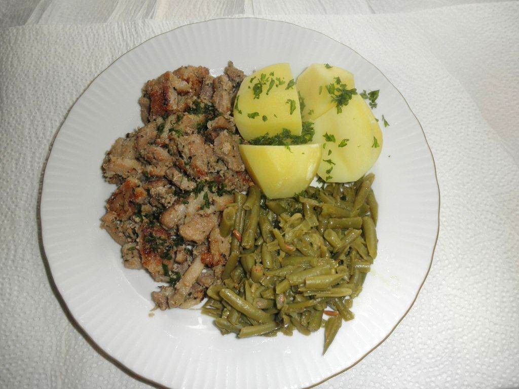 So, das Fleisch ist durchgezogen und köchelt nun vor sich hin....ein unglaublich guter Geruch macht sich breit. Allerdings muss ich gestehen: ich habe gesündigt und variiert - gut durchwachsenen Kamm statt Bauch genommen, es dürfte wohl etwas trocken werden nach dem Anbraten. Habe das Rezept in anderer Reihenfolge (erst anbraten, dann kochen) gefunden: