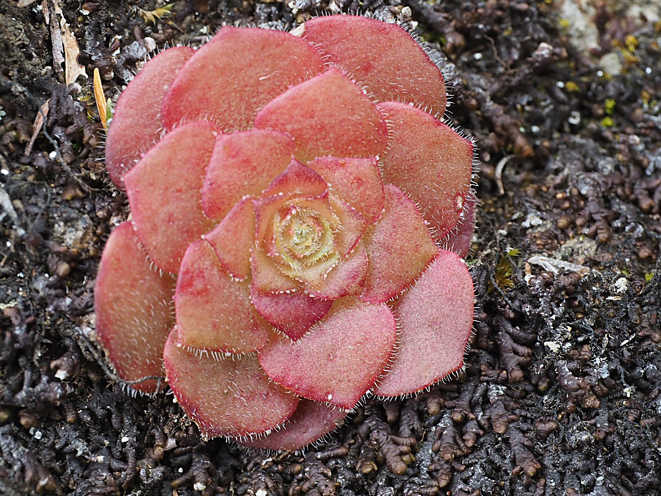 das war ja gleich ein Volltreffer. Danke für Eure Bestimmungen und interessanten Anmerkungen (vielleicht kommt ja bei Stachys sogar noch etwas nach). Am zweiten Tag haben wir (wegen reichlicher Flechtenausbeute) lange an der Boca do Risco zugebracht. Daher gibt es von dort auch mehr Pflanzenbilder. Das beigefügte Äonium war gewissermaßen nur Beifang zu den drei Flechten, sieht aber so hübsch aus, dass ich es hier zwecks genauerer Ansprache vorstelle. (Bei den Flechten tue ich mich leichter ).
