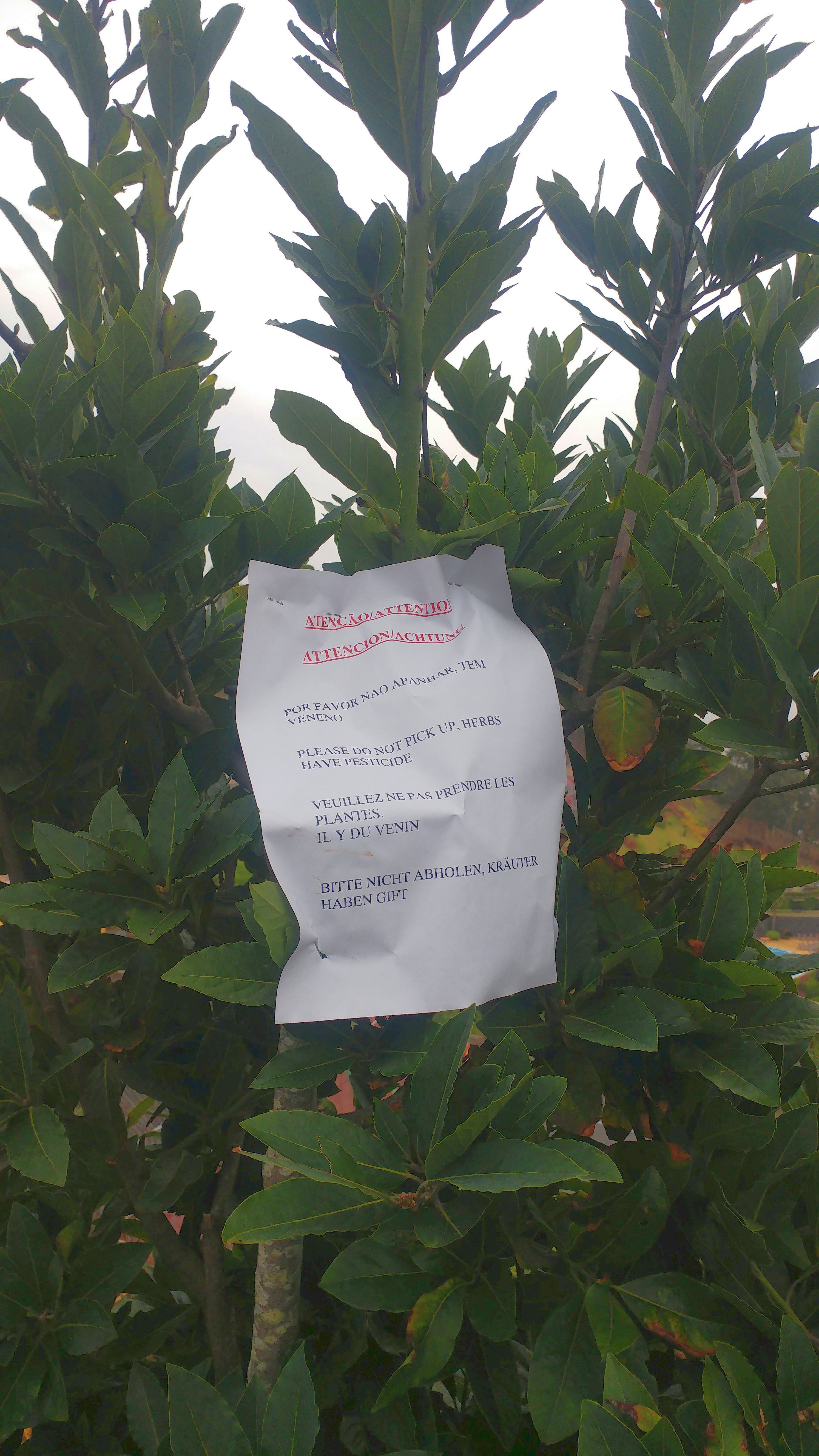 @Jasonaut: Mal ehrlich - das siehst Du doch selbst, dass das Lorbeer ist, und dann auch noch gerade in der richtigen Größe, um als Fleischspieß zu taugen. Die Giftdrohung ist nur der gewöhnliche Trick, um Leute vom Klauen abzuhalten, auch bei Obstbäumen. Marihuana-Anbau kommt aber in Portugal und auch auf Madeira, glaube ich, allmählich in Gang. Natürlich nur für pharmazeutische Zwecke. Wie tönte es heute morgen aus dem Radio : Seitenbacher Hanföl! Bisher war es immer Seitenbacher Müsli. Wie die Taz mal schrieb: Hier macht der Chef die Werbung noch selbst.