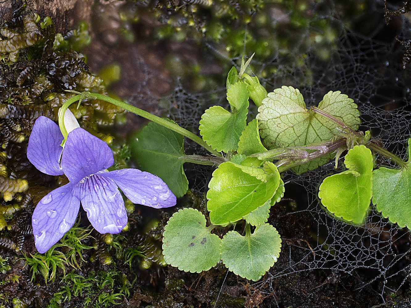 sondern die Til-Bäume erwiesen sich auch hinsichtlich des Flechtenbewuchses als Enttäuschung. Immerhin fand ich in einer Baumhöhle, in ca. 1 m Höhe, ein Veilchen, das ich hier in Deutschland als Viola riviniana angesprochen hätte. (Vermutlich aber handelt es sich dabei jedoch um das endemische Madeira-Baumhöhlenveilchen (Viola arborea ssp. ocoteae) ). Weil in Stativhöhe - und weitgehend windstill - habe ich es mit der bei den Flechten verwendeten Stacking-Technik aufgenommen (1/30 sec., bei ISO 500; 27 Einzelbilder):