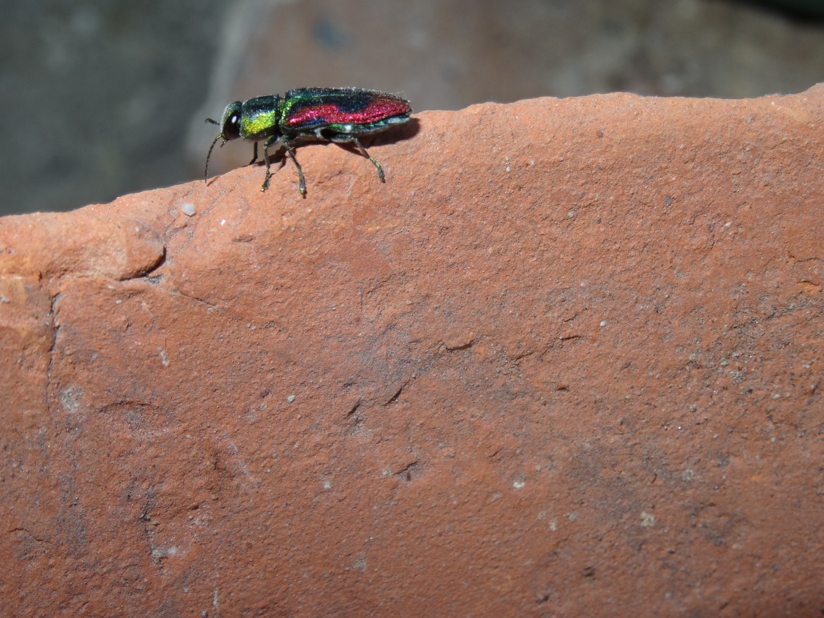 Für deinen Käferspezialisten habe ich vor Kurzem eine Entdeckung vor der Haustür gemacht: Einen bunten Kirschbaumprachtkäfer . Ich bin ganz stolz auf meinen Zufallsfund: Er wurde mittlerweile schon in einer Datenbank aufgenommen