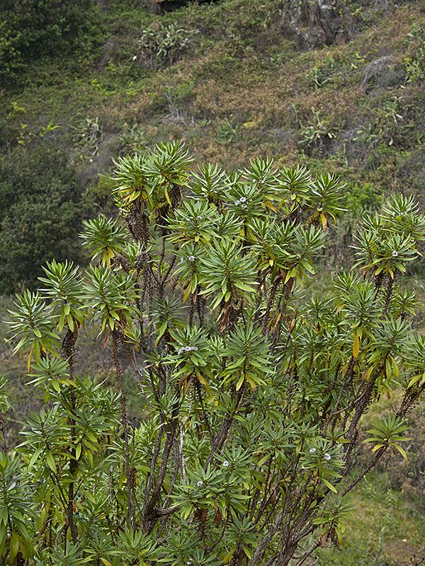 Nun aber zur Botanik. Man bewegt sich auf beiden Abschnitten durch eine Vegetation, die typische für die küstennahen Bereiche ist und streckenweise auch recht naturnah sowie endemitenreich ausgebildet ist. Diese Vegetation ist durch Besiedlung und Umwandlung in Kulturlandschaft stark dezimiert worden und man findet sie fast nur noch in Regionen, wo der Anbau von Nahrungsmitteln kaum Sinn macht. Man trifft viele alte Bekannte, wie z.B. die Fischfang-Wolfsmilch (Euphorbia piscatoria), von der es insbesondere am "Faja-Weg" uralte und knorrige Exemplare gibt.