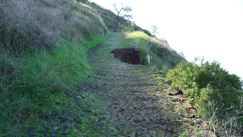 Der Weg ist trotzdem noch ausreichend breit, aber schade um den schönen Pflasterweg. Die Wiederherstellung wird viel Arbeit kosten.