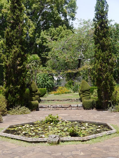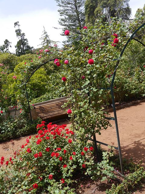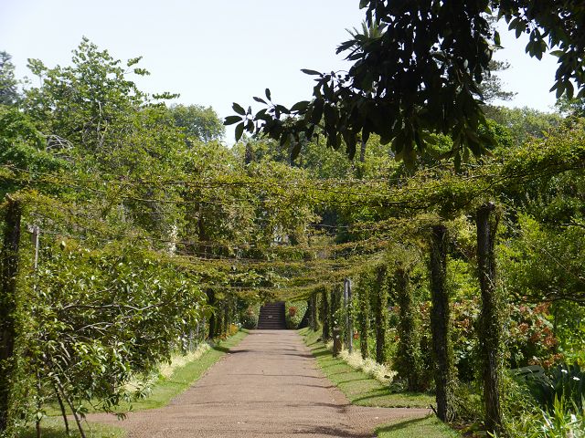 nachdem ich nach einem Besuch der Quinta dos Saltos (Orchideen) so begeistert gewesen bin, wollte ich unbedingt noch einen blühenden Pflanzengarten besichtigen. Die Damen der Hotelrezeption haben mir die Palheiro Gardens empfohlen und nächsten Tag ging es gleich los. Von der Hafenpromenade in Funchal kommt man mit Bus 37 bzw. 36 leicht hin (gegenüber der Palheiro Gardens ist die Bushaltestelle). Als ich angekommen bin (Eintritt 10,50 €) war ich zunächst wenig begeistert, da der Eingangsbereich einen mehr verwilderten Eindruck machte. Aber die Aussichten auf Funchal ließen die Einöde schnell vergessen. Nach einer Weile offerierten sich die ersten gepflegten Grünanlagen. Für Wanderfreunde gibt es sogar ein „Ribeiro do Inferno“, aber dieser Weg ist nicht mit „Stöckelschuhen“ zu bewältigen. Mehr und mehr zeigten sich die gepflegten Rabatten und in dem Garten befinden sich neben einer Kapelle, Teehaus auch künstlich angelegte Wasserläufe, die harmonisch in die Natur eingebettet sind. Besonders hat mir der Rosengarten gefallen (Bild 10 und 11), da dort sehr seltene Rosenarten zu sehen waren. Liebenswerte Teiche mit Fröschen und Seerosen bzw. hübsch verschnittene Hecken und Sträucher runden den Besuch ab. Schattenspendend wirken alte, große Bäume mit riesigen Baumstämmen. Noch heute wohnt die Familie Blandy in der hiesigen Quinta und das Areal ist durch „privat“ abgesperrt. Unmittelbar befindet sich auch das Hotel Casa Velha bzw. der Palheiro Golf. Persönlich habe ich mehr Schilder erwartet, so dass man zumindest über die Pflanzennamen informiert wird. Zwar ist im Hochsommer vieles verblüht gewesen (der Garten soll ja ein Mekka für Kamelienfans sein, die von November bis April blühen), aber trotzdem lohnt sich ein Besuch. Der Park ist Anfang August fast menschenleer gewesen und man konnte die Ruhe der Natur genießen.