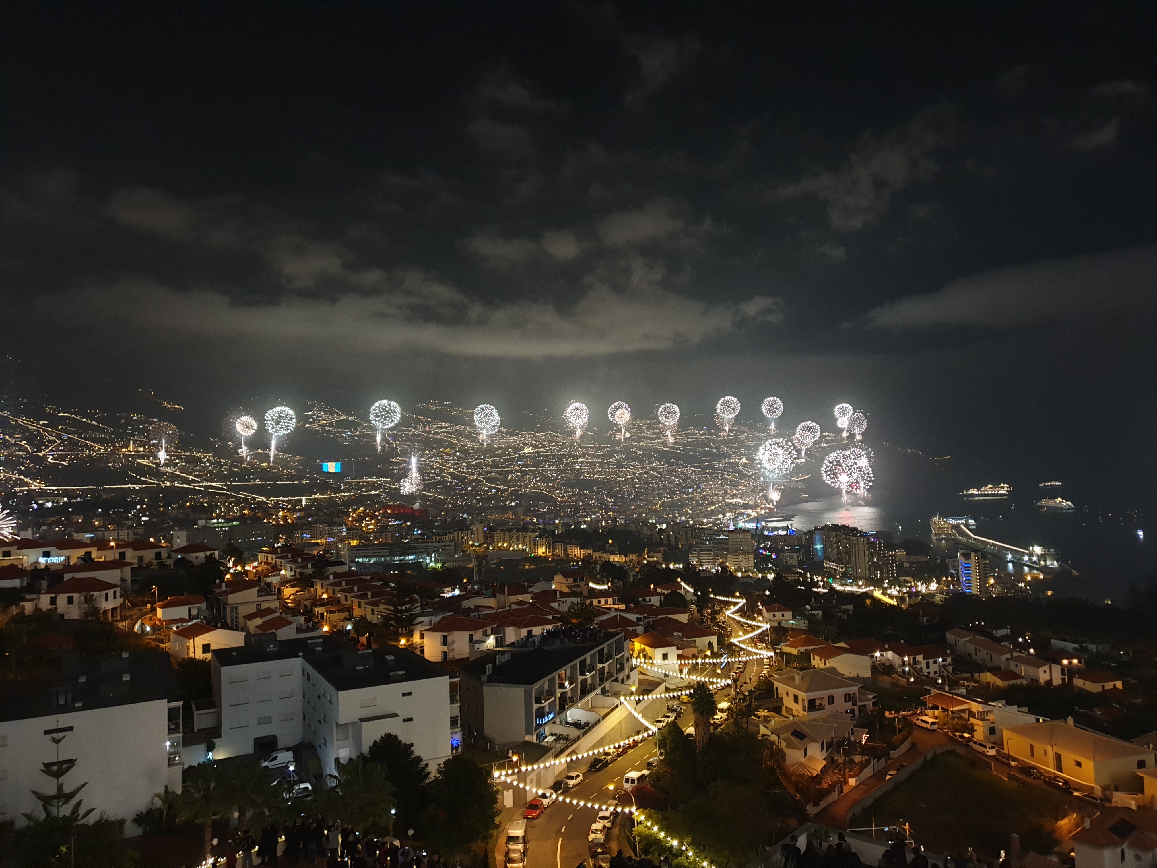 Die Aufforderung, das Feuerwerk möglichst von zuhause aus anzusehen, die markierten Plätze (und die Maschinenpistolen?) zeigten Wirkung. Es waren bei weitem nicht alle Standplätze belegt: https://funchalnoticias.net/2020/12/31/v...ra-do-quadrado/