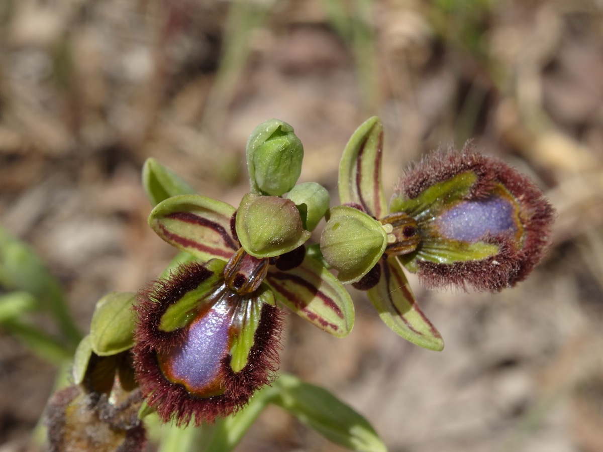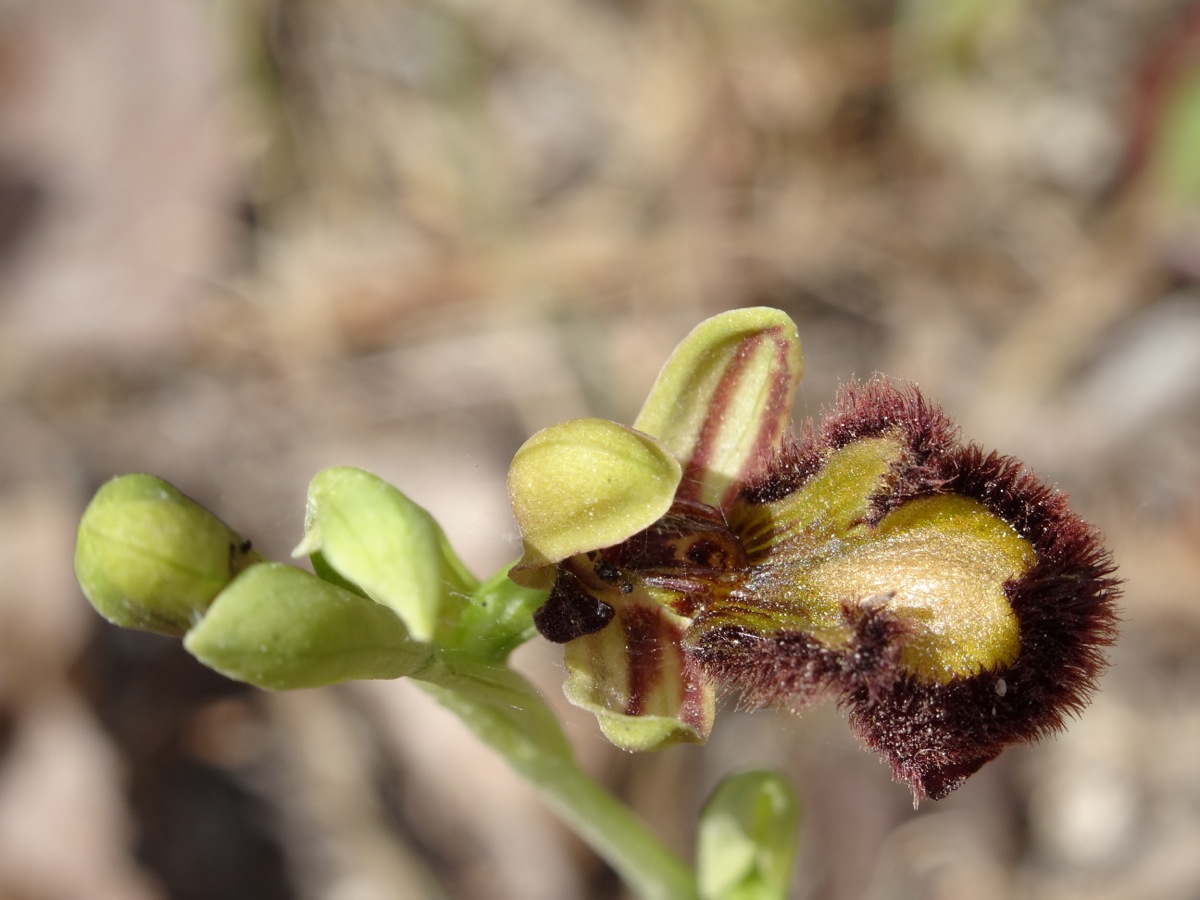 Und Nabend Iris, bei der von dir abgebildeten Art handelt es sich um die Puppen-Orchis (Aceras anthropophorum). Und dann gibt es noch im Anhang (Bild 2) eine "versteckte" Orchidee, nämlich die Spiegel-Ragwurz (Ophrys speculum), in der meiner Meinung nach typischen Ausbildung.
