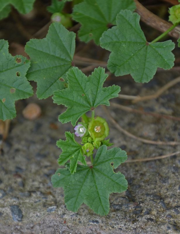 Die Kleinblütige Malve (Malva parviflora) ist übrigens auch richtig. Sie kommt ebenso wie Strauchpappel vorwiegend in den unteren Regionen der Insel vor, ist aber deutlich niedrigwüchsiger. Meistens kriecht sie nur auf dem Boden rum, während die Strauchpappel aufrecht wächst und über einen Meter groß werden kann.