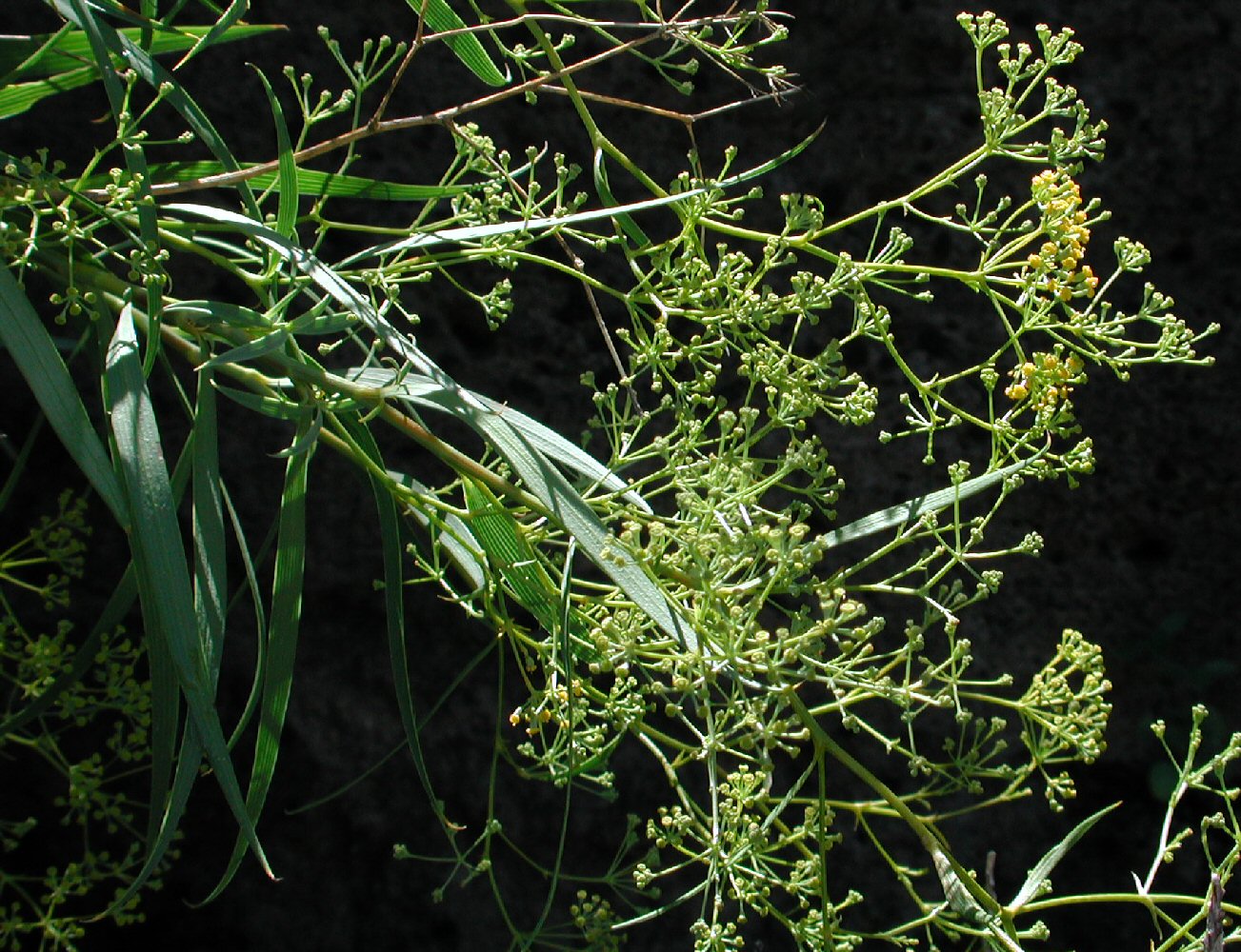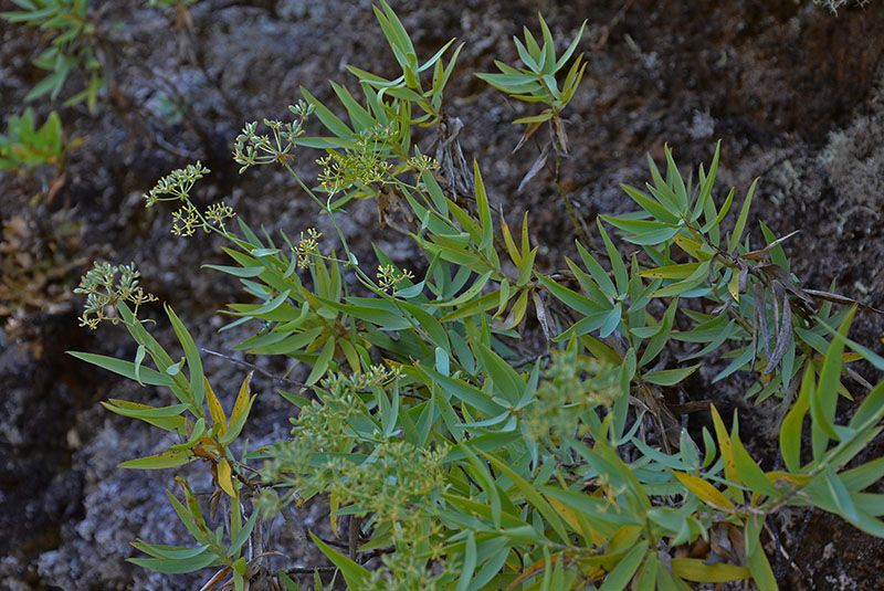 Und eins vorab, ich habe keine Ahnung woher der deutsche Name kommt. Viel bemerkenswerter ist aber auch, dass alle Arten innerhalb der Gattung Bupleurum ganzrandige Blätter besitzen, was bei den Doldenblütlern ansonsten nur sehr selten vorkommt. Meistens besitzen sie mehr oder weniger stark zerteilte Blätter mit zum Teil sehr schmalen Blattabschnitten, wie beispielsweise beim Fenchel oder Dill. Ein weiterer Vertreter mit fein zerteilten Blättern ist der Kurzblättrige Knollenkümmel (Bunium brevifoloium), eine Art die nur in den Höhenlagen auf Madeira vorkommt (das Weidenblättrige Hasenohr hingegen gibt es auch noch auf den Kanaren). Sie wird maximal 50 cm groß und gilt als äußerst selten. Wir haben sie bisher auch erst einmal gesehen, und zwar an der Lajeado. Müssen mal bei Gelegenheit nachschauen, ob die da oben noch was davon übrig gelassen haben...