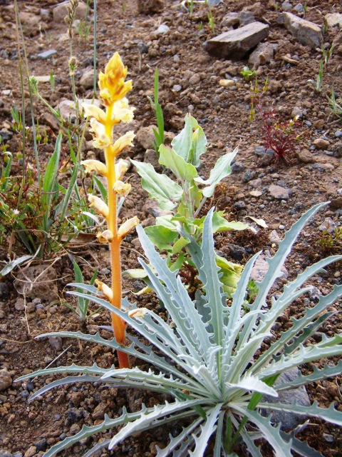 vielleicht noch ein kleiner Hinweis, auch an alle anderen hier. Übersichtsaufnahmen sind auf jeden Fall sinnvoll, da man unter Anderem einen Hinweis auf die Wirtspflanze bekommen kann (in deinem Fall scheint es die Drüsige Wolldistel Andryala glandulosa in der Subspecies varia zu sein). Bei den Sommerwurzen sollte man aber auch immer die Blüten so nah wie möglich aufs Bild bekommen, sowohl von vorne als auch von der Seite (wegen der Farbe der Narben und der Behaarung der Blüten). Und am besten noch eine Blüte abpflücken und zu Hause abmessen (falls man im Gelände kein Lineal zur Hand hat ).