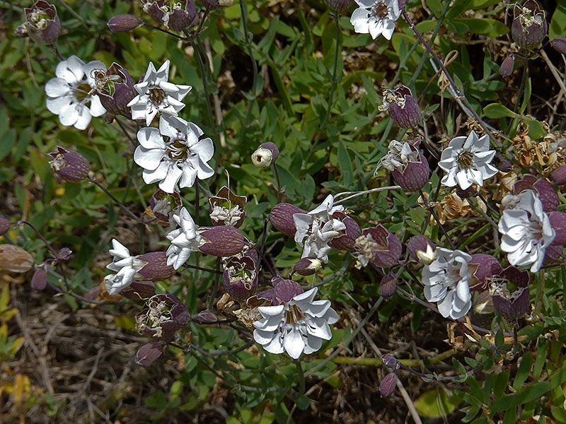 nachdem wir schon zweimal ungefähr zur selben Jahreszeit auf der Halbinsel waren, bot sich diesmal ein ganz neuer Aspekt. Aufgrund des relativ kühlen und feuchten Frühjahres blühte es hier an allen Ecken und Enden, wobei gelbe und weiße Blüten eindeutig dominierten (mal abgesehen von den Gäsern). Einer der häufigsten "Weißblüher" war die Wilde Möhre (Daucus carota), die allerdings in weiten Bereichen Europas verbreitet ist und nicht gesondert vorgestellt werden muss. Recht häufig ist auch das Einblütige Leimkraut (Silene uniflora), das man regelmäßig am Wegesrand sehen kann, ebenso wie den Basilikum-Ziest (Stachys ocymastrum), der auf der Insel insgesamt recht häufig anzutreffen ist.