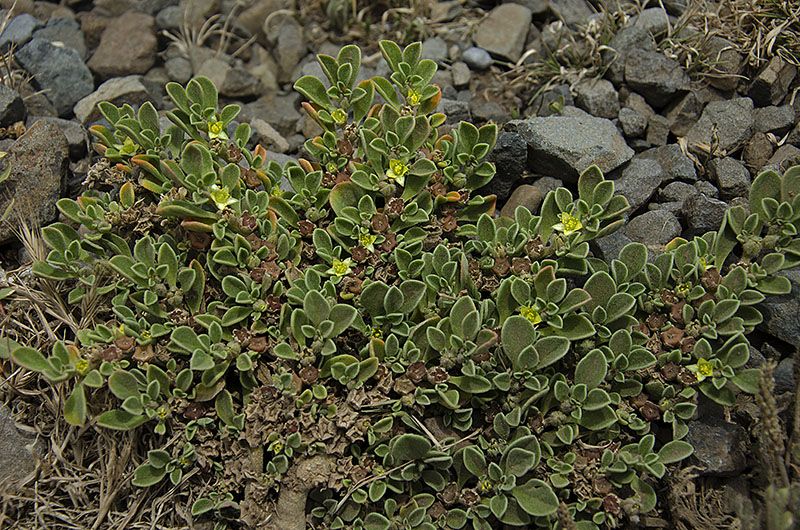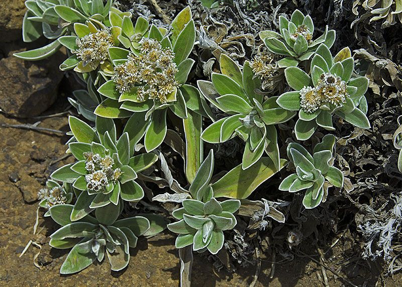 Zum Abschluß noch ein typischer Vertreter extrem trockener und karger Böden. Das Kanaren-Eiskraut (Aizoon canriense) besiedelt ähnliche Standorte wie die Knotenblütige und die Kristall-Mittagsblume (auch Eiskraut genannt) (Mesembryanthemum nodiflorum und M. chrystallinum, Fotos ebenfalls schon im Forum vorhanden).
