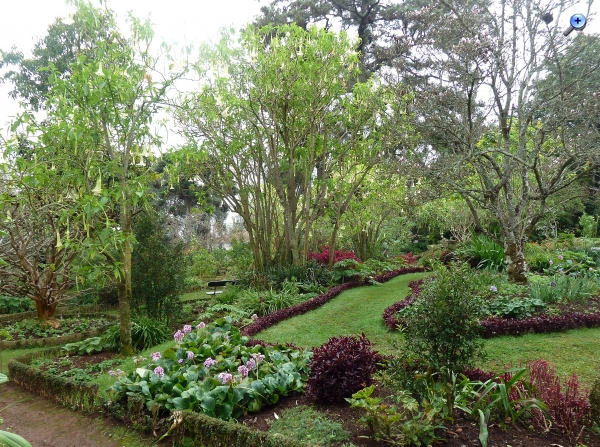 nachdem ich nach einem Besuch der Quinta dos Saltos (Orchideen) so begeistert gewesen bin, wollte ich unbedingt noch einen blühenden Pflanzengarten besichtigen. Die Damen der Hotelrezeption haben mir die Palheiro Gardens empfohlen und nächsten Tag ging es gleich los. Von der Hafenpromenade in Funchal kommt man mit Bus 37 bzw. 36 leicht hin (gegenüber der Palheiro Gardens ist die Bushaltestelle). Als ich angekommen bin (Eintritt 10,50 €) war ich zunächst wenig begeistert, da der Eingangsbereich einen mehr verwilderten Eindruck machte. Aber die Aussichten auf Funchal ließen die Einöde schnell vergessen. Nach einer Weile offerierten sich die ersten gepflegten Grünanlagen. Für Wanderfreunde gibt es sogar ein „Ribeiro do Inferno“, aber dieser Weg ist nicht mit „Stöckelschuhen“ zu bewältigen. Mehr und mehr zeigten sich die gepflegten Rabatten und in dem Garten befinden sich neben einer Kapelle, Teehaus auch künstlich angelegte Wasserläufe, die harmonisch in die Natur eingebettet sind. Besonders hat mir der Rosengarten gefallen (Bild 10 und 11), da dort sehr seltene Rosenarten zu sehen waren. Liebenswerte Teiche mit Fröschen und Seerosen bzw. hübsch verschnittene Hecken und Sträucher runden den Besuch ab. Schattenspendend wirken alte, große Bäume mit riesigen Baumstämmen. Noch heute wohnt die Familie Blandy in der hiesigen Quinta und das Areal ist durch „privat“ abgesperrt. Unmittelbar befindet sich auch das Hotel Casa Velha bzw. der Palheiro Golf. Persönlich habe ich mehr Schilder erwartet, so dass man zumindest über die Pflanzennamen informiert wird. Zwar ist im Hochsommer vieles verblüht gewesen (der Garten soll ja ein Mekka für Kamelienfans sein, die von November bis April blühen), aber trotzdem lohnt sich ein Besuch. Der Park ist Anfang August fast menschenleer gewesen und man konnte die Ruhe der Natur genießen.