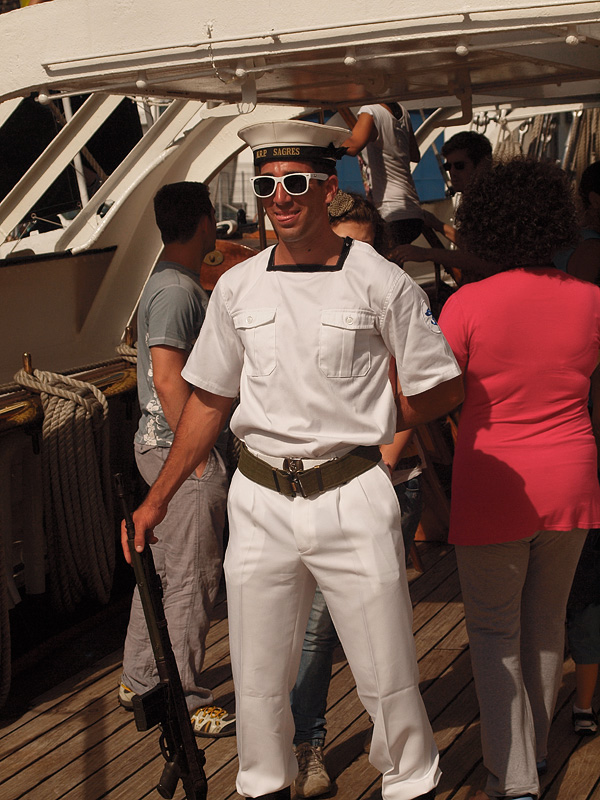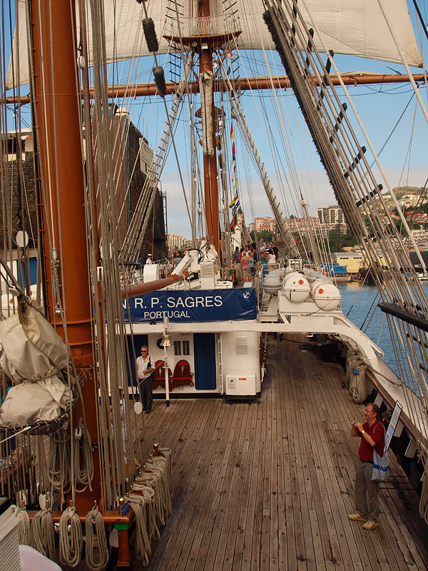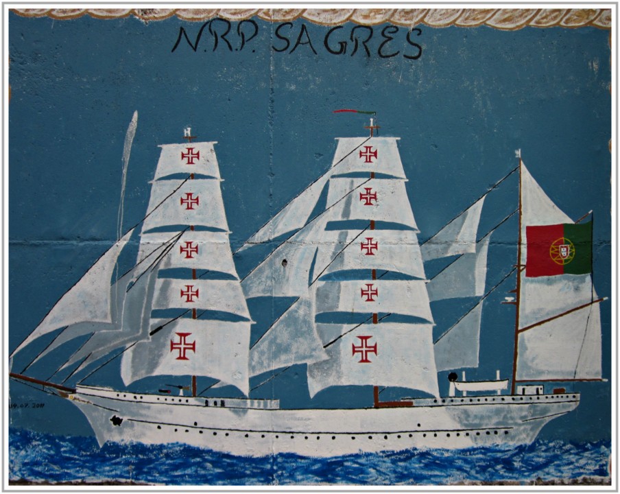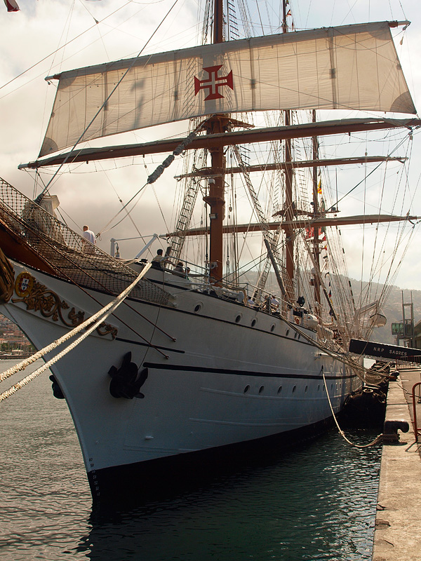 Die Sagres scheint mir ziemlich baugleich zu sein mit der Gorch Fock. Ausnahme die Gallionsfigur: hier Heinrich der Seefahrer, auf der Gorch Fock der Albatros.
