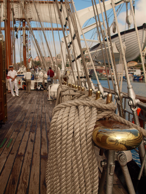 Heute morgen haben wir uns das Schulschiff "Sagres" von der port. Marine angeschaut. Alles war supersauber und poliert. Die Universität hat sogar einen kleinen Heli fliegen lassen, um zu filmen. Vielleicht finde ich ja den Film später und füge ihn dann mit dazu.