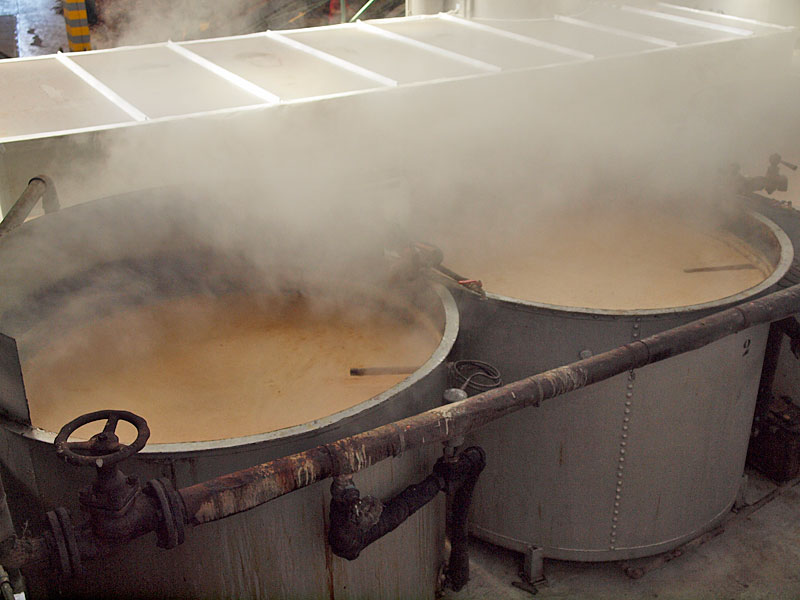 in diesen Kesseln wird der gefilterte Saft von 60Grad auf 90Grad hochgefahren,